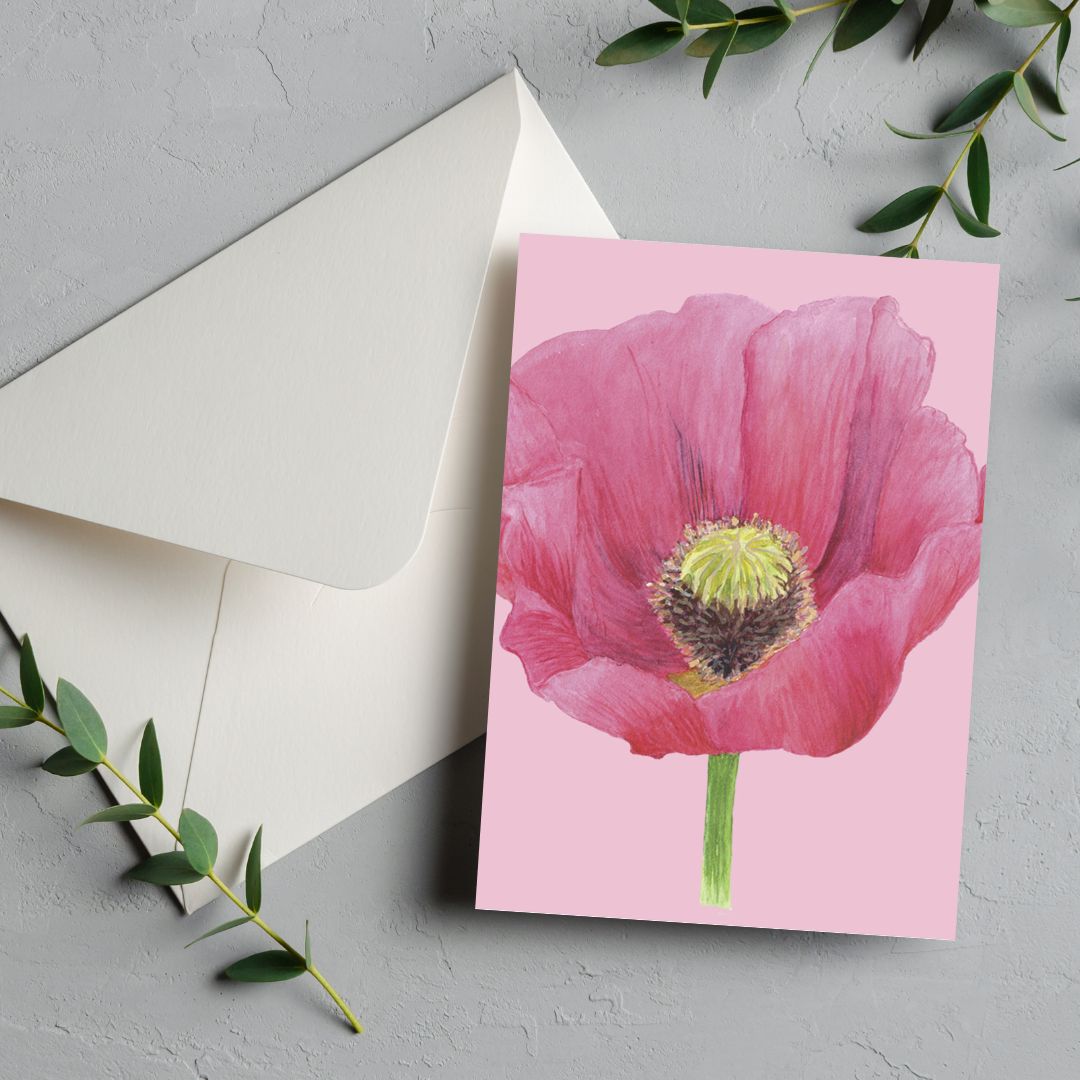 Pink Poppy (Watercolour) Print Card /envelope, bag